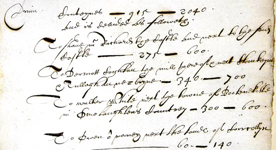 This warrant relates to laying out lands in Druin known today as Lemanaghan. These lands are listed on the next page. The date of August 1625 is very significant as will be shown.