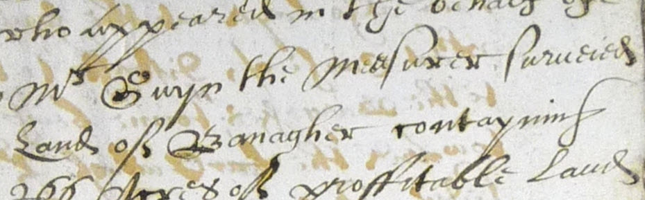 “Mr Gwyn the measurer surveied the whole towne and land of Banagher containing 266 acres.”