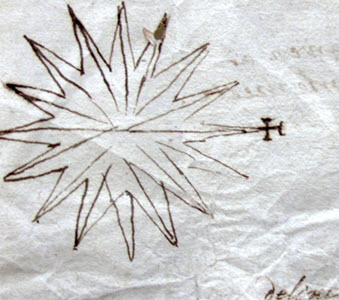 None of the maps are oriented N-S as is typical today. However, the orientation is the same on the three maps and the compass indicators are identical.