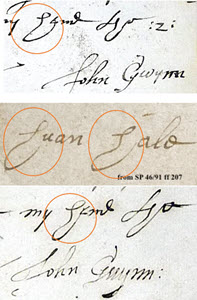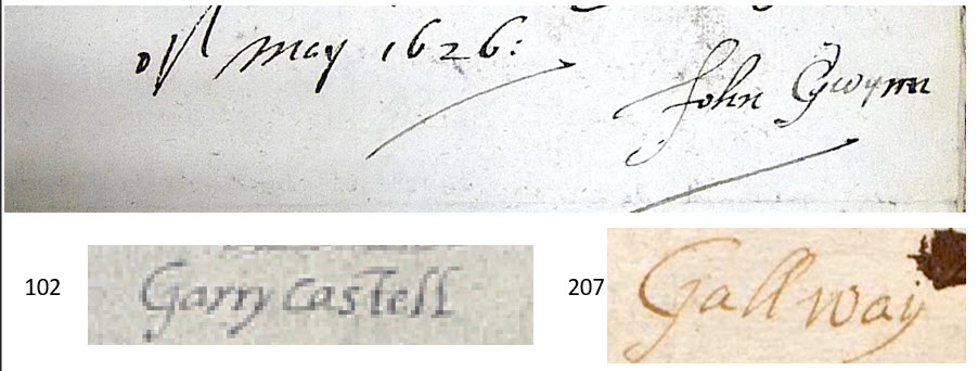This note is on the back of map ‘207’. It is almost certainly intended to deceive by suggesting the map was by someone called Huan Halo. ie Huan Halo scrivit or drawn by Huan Halo. (The first letter is ‘h’ although it resembles ‘g’) Note Gwynn’s characteristic capital ‘B’ in Bannoher.