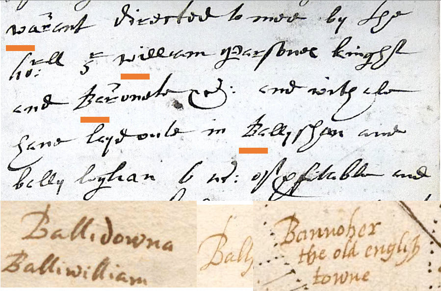 Not only does Gwynn’s name appear on several maps of West Offaly but letters between William Parsons, Surveyor-General from 1602 to 1641, and Mathew De Renzy have multiple references to Gwynn. These are mainly warrants from Parsons to Gwinn to survey and layout lands in and around Banagher, and in particular De Renzy’s own lands. Fortunately, most of the correspondence is dated and covers the period 1625-33.