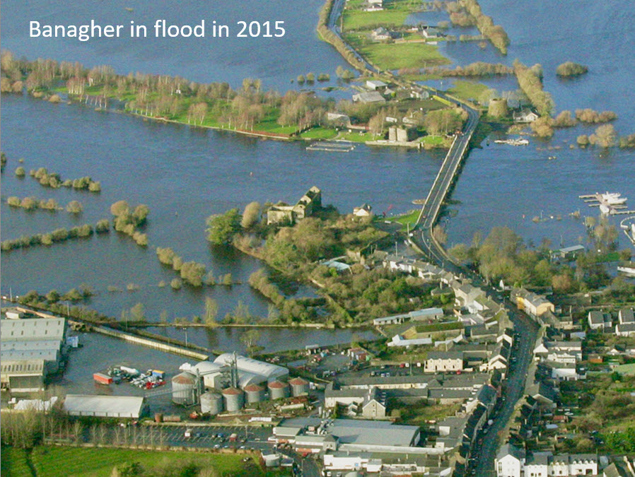 Aerial photos of Banagher in flood show that ‘The old English towne of Bannoher’ would have been on a flood plain. De Renzy’s letters record that this area was ‘for the most part overflowen with water on high floods’. The Anglo-Normans would not have built on a flood plain.