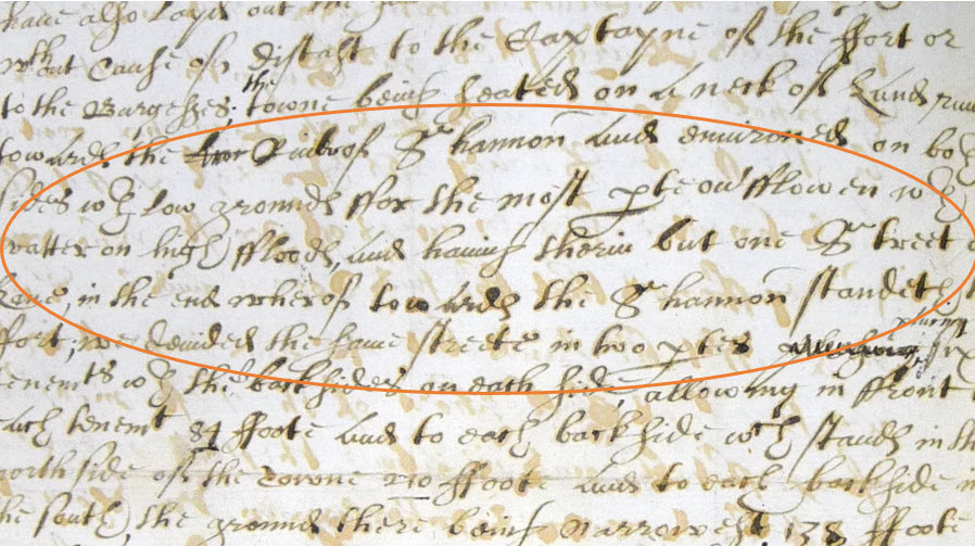 This extract from a very important document (yet to be published) dated October 1628 relates to a dispute between the burgessmen of Banagher Corporation and their sovereign, Sir Arthur Blundell. Part of the letter describes how the layout of the new town was constrained by floods.